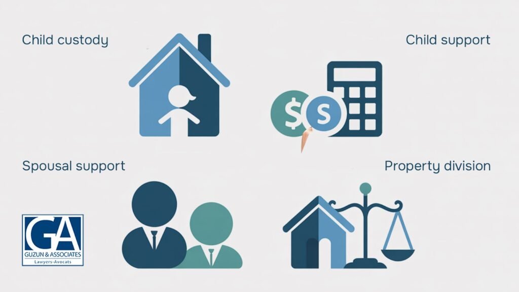 A Quebec divorce lawyer should guide you through property division, child custody and access, child support, and spousal support. A good family lawyer also explains how your matrimonial regime (community of property, partnership of acquests, or separation as to property) affects asset division. At Guzun & Associates, we clarify each step for clients.